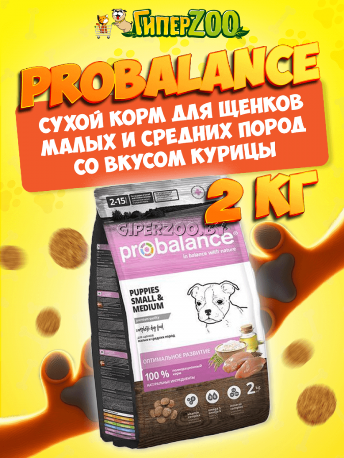 Корм Probalance "Immuno Puppies Small & Medium" содержит более 30 полезных элементов. В этом его отличие от дешевых аналогов. Заводчики отмечают, что кормление щенка кормом Probalance помогает вырастить здоровую и активную собаку