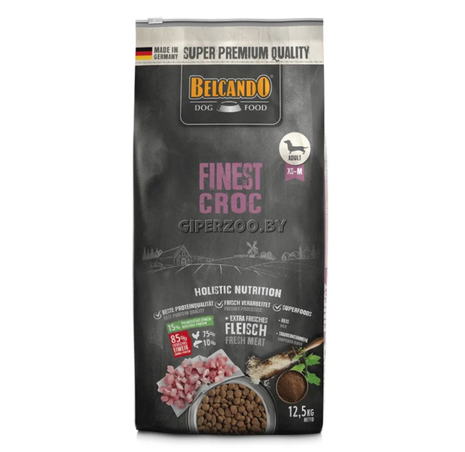 Belcando Finest Croc для собак - сухой суперпремиум корм для взрослых привередливых собак малых и средних пород с нормальным уровнем активности. Специально отобранное сырьё, вкусная утка и печень делают Belcando Finest Croc кормом номер один для гурманов среди взрослых собак.