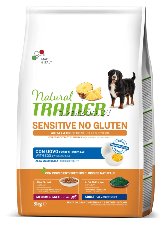 Trainer Natural Sensitive Medium Maxi Adult NO GLUTEN (яйцо), 3 кг
