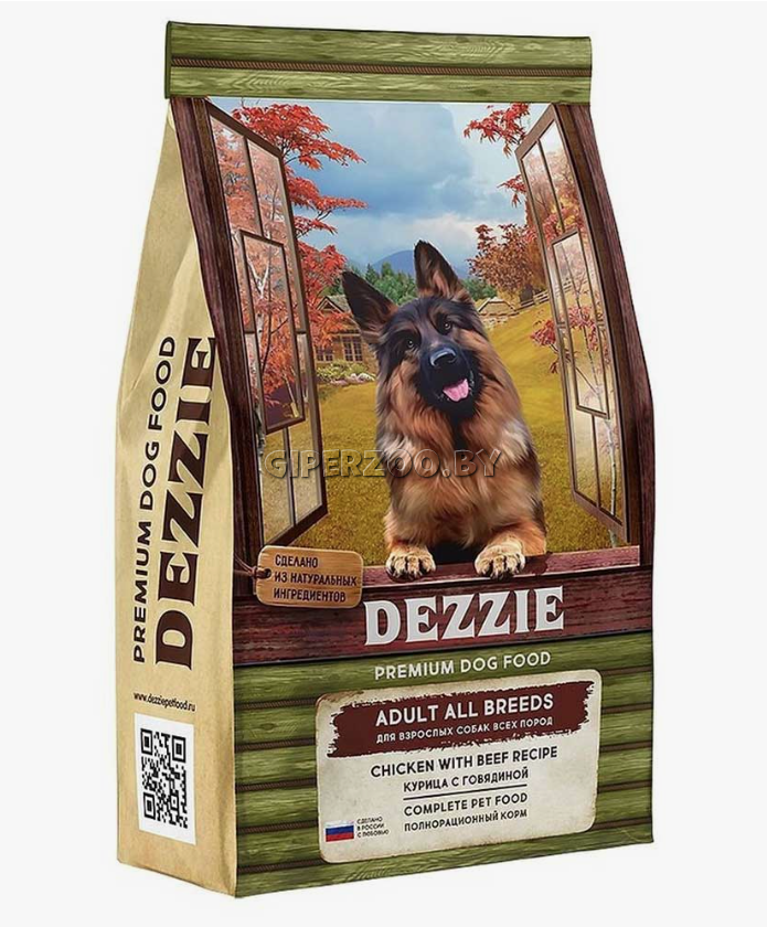 Dezzie Adult Dog (Курица, говядина) — полнорационный корм для взрослых собак всех пород, является универсальной рецептурой, способной удовлетворить все потребности организма собаки любой породы и размера.