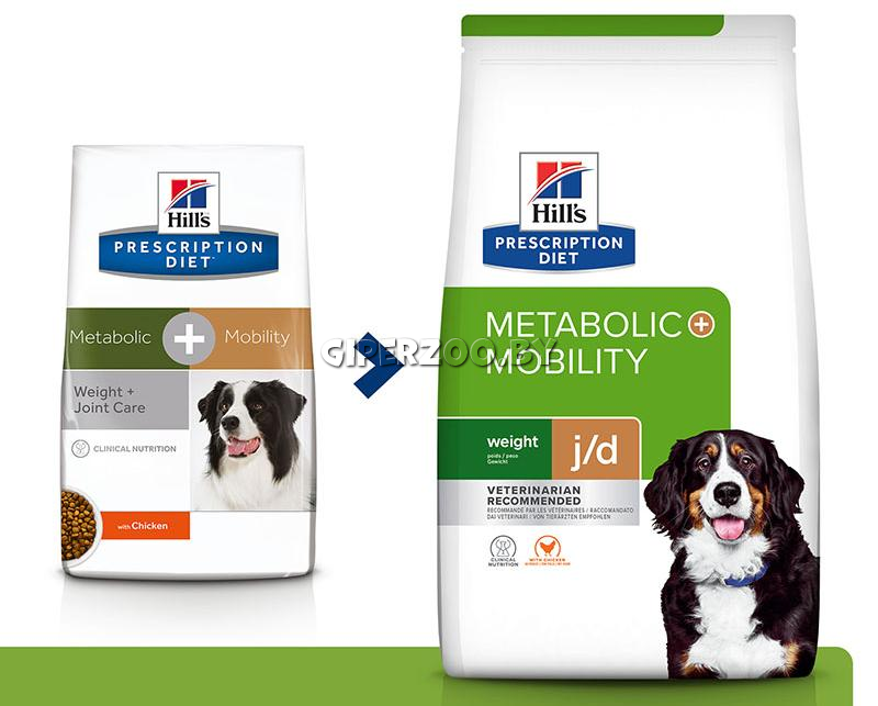 Hill's Prescription Diet Metabolic + Mobility Mini сухой диетический корм обеспечивает собаку необходимыми нутриентами во время снижения веса и поддерживает здоровье суставов.