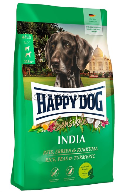 Happy Dog Sensible India, 10 кг - это вегетарианский корм с рисом, горохом и куркумой для чувствительных гурманов.