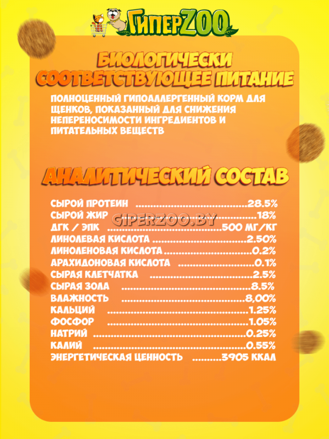 ЕДИНСТВЕННЫЙ ИСТОЧНИК БЕЛКА ЖИВОТНОГО ПРОИСХОЖДЕНИЯ Единственный источник животного белка минимизирует вероятность аллергической реакции.
