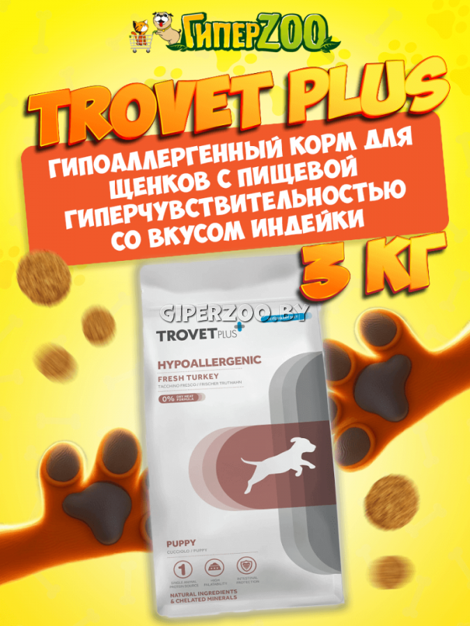 Trovet Plus Hypoallergenic Puppy (Индейка) — полноценный гипоаллергенный корм для щенков, показанный для снижения непереносимости ингредиентов и питательных веществ. Содержит тщательно отобранные ингредиенты, чтобы свести к минимуму вероятность иммунологических реакций (пищевая аллергия) или неиммунологических реакций (пищевая непереносимость) в виде проблем с кожей и/или желудочно-кишечным трактом.