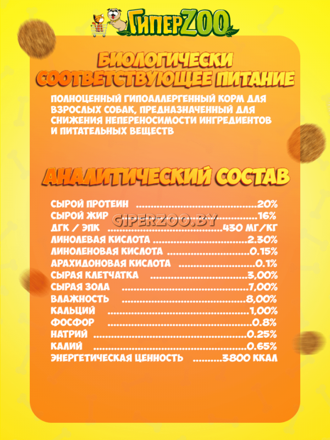Единственный источник животного белка минимизирует вероятность аллергической реакции. - ВЫСОКИЕ ВКУСОВЫЕ КАЧЕСТВА