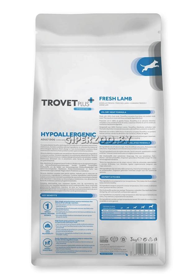 Сухой корм для собак Trovet Plus Adult Dog Hypoallergenic (ягненок), 10 кг – полноценный гипоаллергенный корм для взрослых собак для снижения непереносимости ингредиентов и питательных веществ. Содержит тщательно отобранные ингредиенты, чтобы свести к минимуму вероятность иммунологических реакций (пищевая аллергия) или неиммунологических реакций (пищевая непереносимость) в виде проблем с кожей и/или желудочно-кишечными проблемами.