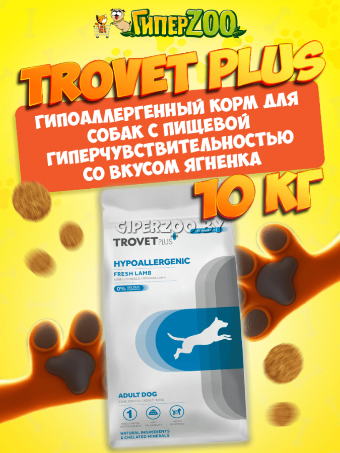 Trovet Plus Adult Dog Hypoallergenic (Ягненок) — полноценный гипоаллергенный корм для взрослых собак для снижения непереносимости ингредиентов и питательных веществ. Содержит тщательно отобранные ингредиенты, чтобы свести к минимуму вероятность иммунологических реакций (пищевая аллергия) или неиммунологических реакций (пищевая непереносимость) в виде проблем с кожей и/или желудочно-кишечными проблемами.