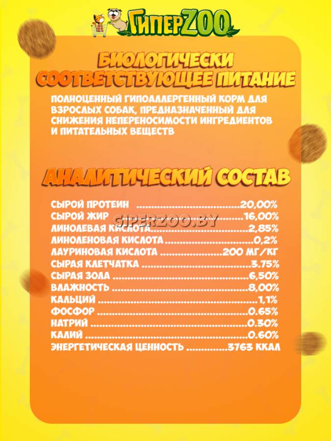 Единственный источник животного белка минимизирует вероятность аллергической реакции. - ВЫСОКИЕ ВКУСОВЫЕ КАЧЕСТВА