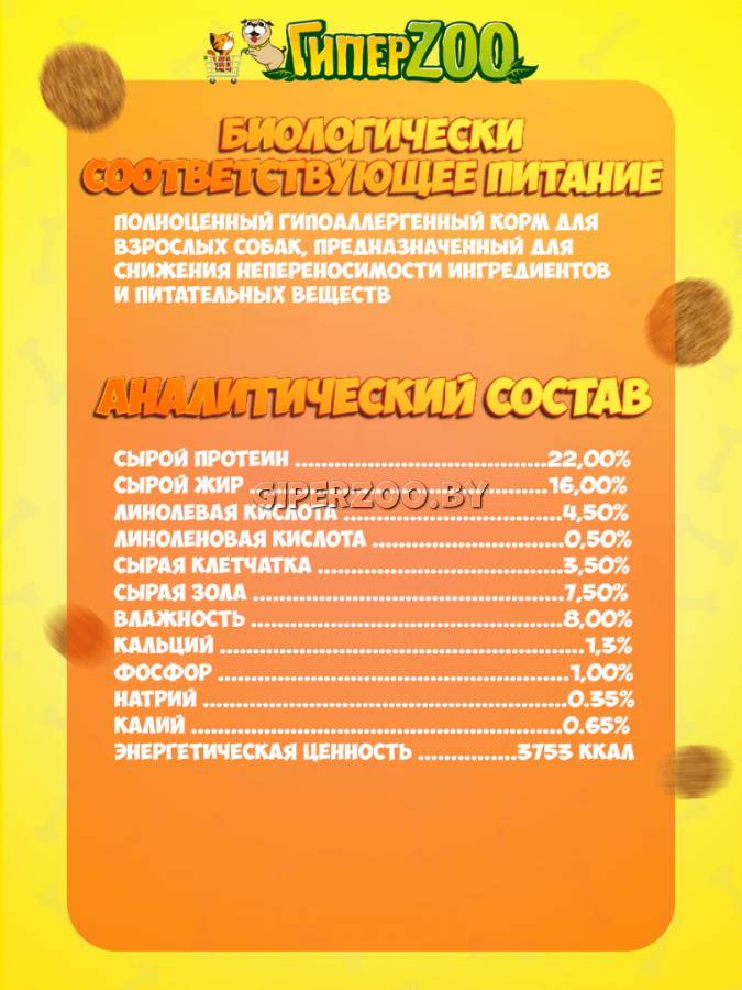ЕДИНСТВЕННЫЙ ИСТОЧНИК БЕЛКА ЖИВОТНОГО ПРОИСХОЖДЕНИЯ Единственный источник животного белка минимизирует вероятность аллергической реакции.