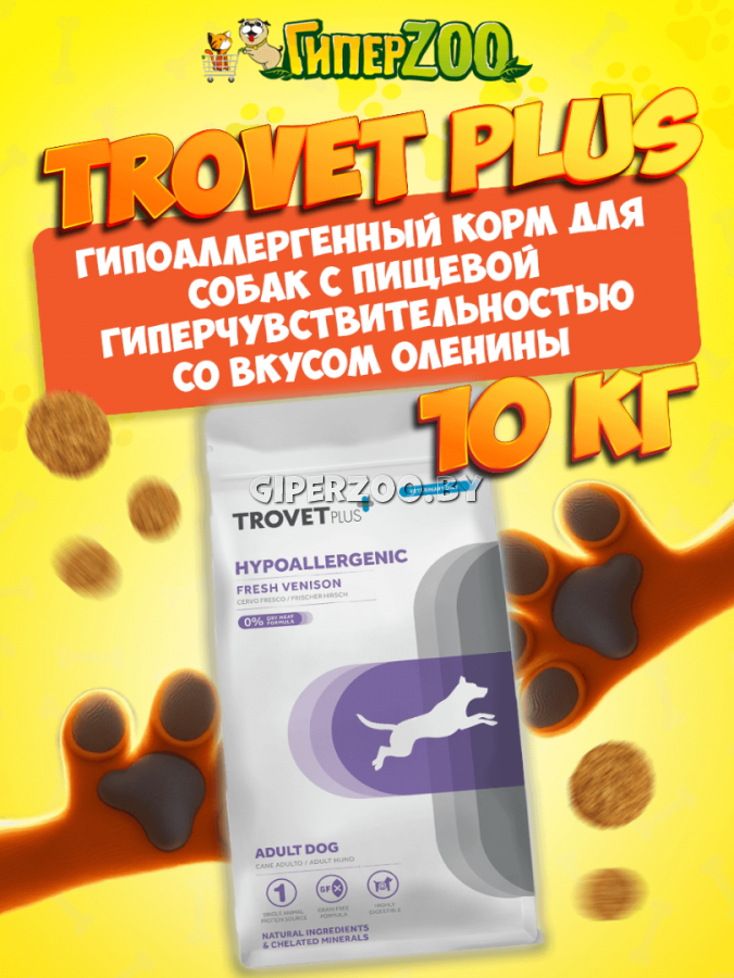Trovet Plus Adult Dog Hypoallergenic (Оленина) — полноценный гипоаллергенный корм для взрослых собак, предназначенный для снижения непереносимости ингредиентов и питательных веществ. Содержит тщательно подобранные ингредиенты, чтобы минимизировать вероятность иммунологических реакций (пищевая аллергия) или неиммунологических реакций (пищевая непереносимость), проявляющихся в виде проблем с кожей и/или желудочно-кишечными расстройствами.