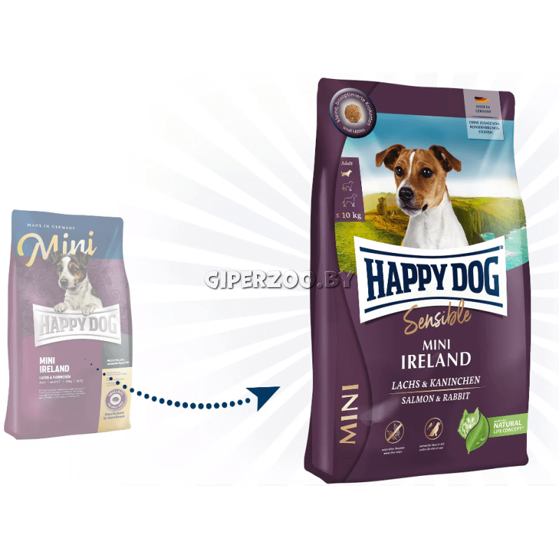 Happy Dog Sensible Mini Ireland (лосось и кролик), 10 кг