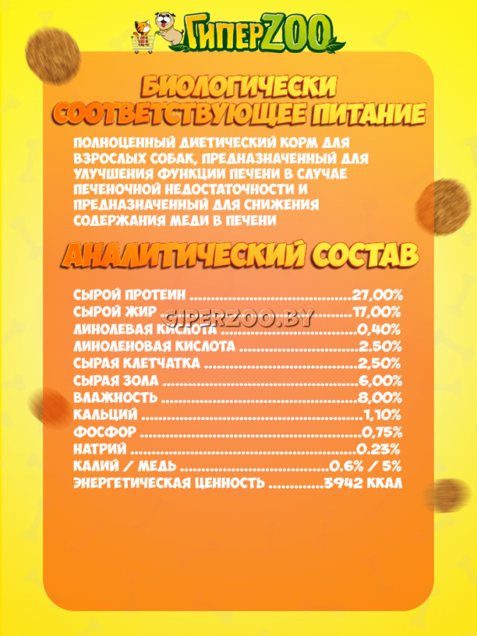 УХОД ЗА ПЕЧЕНЬЮ Умеренный уровень белка снижает нагрузку на печень.