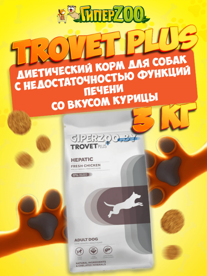 Trovet Plus Adult Dog Hepatic (Курица) — полноценный диетический корм для взрослых собак, предназначенный для улучшения функции печени в случае печеночной недостаточности и предназначенный для снижения содержания меди в печени.