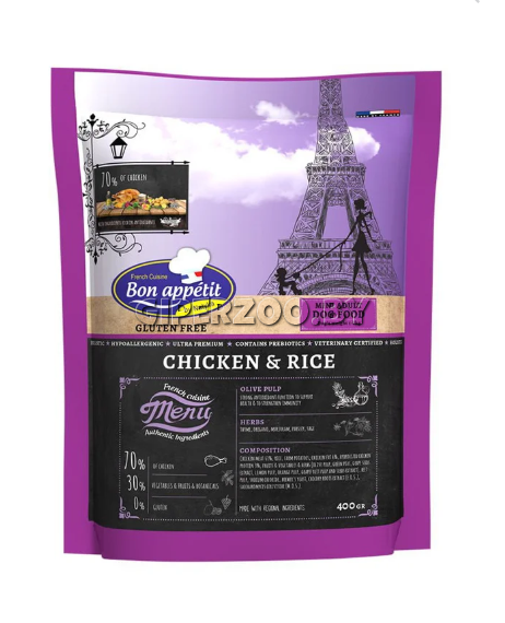 Bon Appétit Mini содержит курицу, как основной источник белка, который гарантирует высокую пищевую ценность для удовлетворения энергетических потребностей взрослых мелких собак. Основанный на высококачественных и легко усвояемых ингредиентах, этот рецепт имеет оптимальное содержание омега-3, 6 и 9 жирных кислот для стимулирования иммунитета и работы мозга. Размер гранулы адаптирован к морфологии челюстей собак мелких пород.