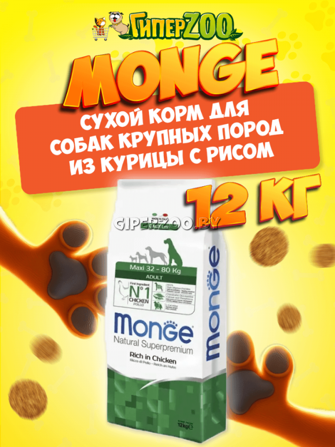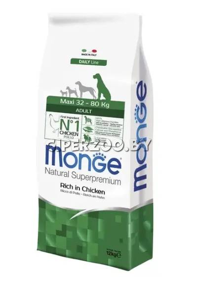 Monge Dog Daily Line Adult Maxi — полнорационный сбалансированный сухой корм из мяса курицы и рисом для взрослых собак крупных пород от 32 до 80 кг с нормальной физической активностью.