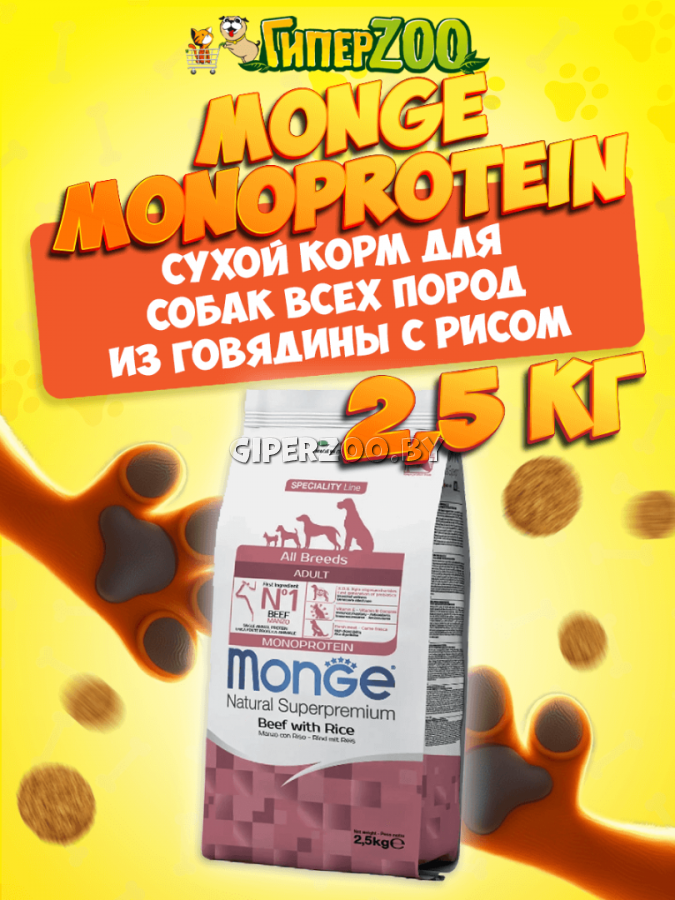 Monge Monoprotein Adult All Breeds (говядина и рис), 2,5 кг