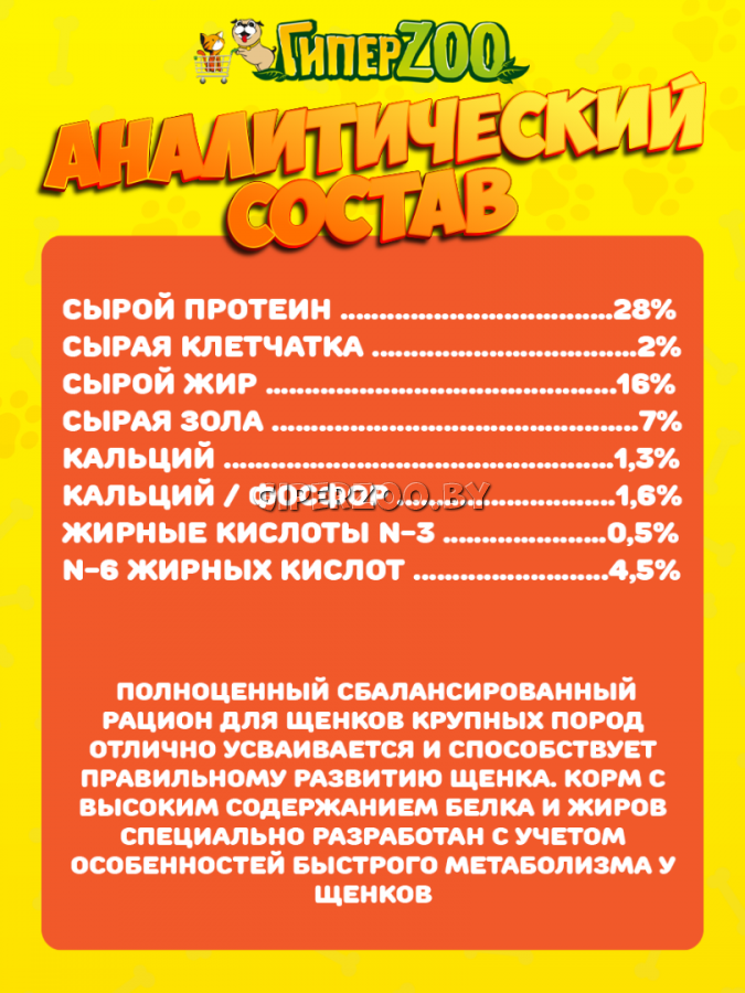Баланс кальция и фосфора для оптимального роста костей и развития суставов. Идеально подобранный баланс кальция и фосфора обеспечивает прочность костей скелета у быстрорастущих щенков крупных пород.