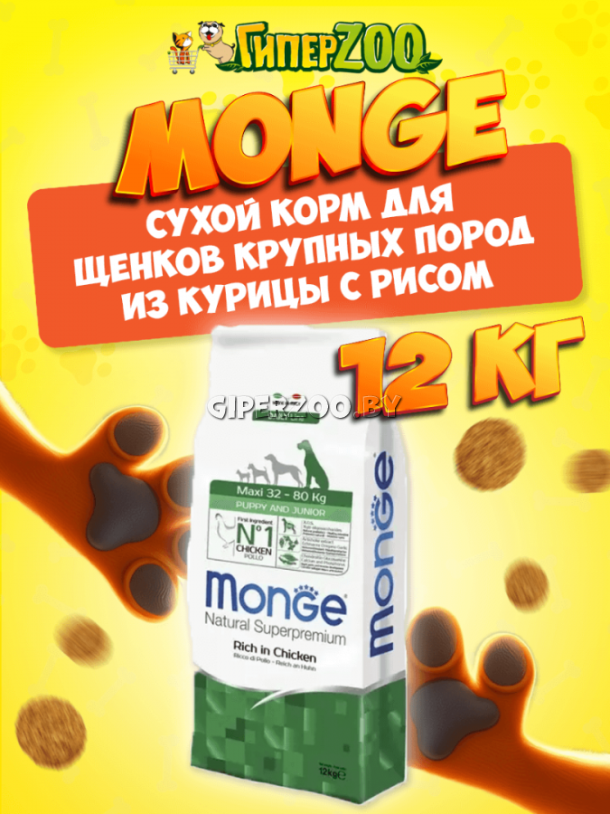 MONGE SUPERPREMIUM DOG MAXI PUPPY&JUNIOR - это полноценный сбалансированный рацион для щенков крупных пород отлично усваивается и способствует правильному развитию щенка.