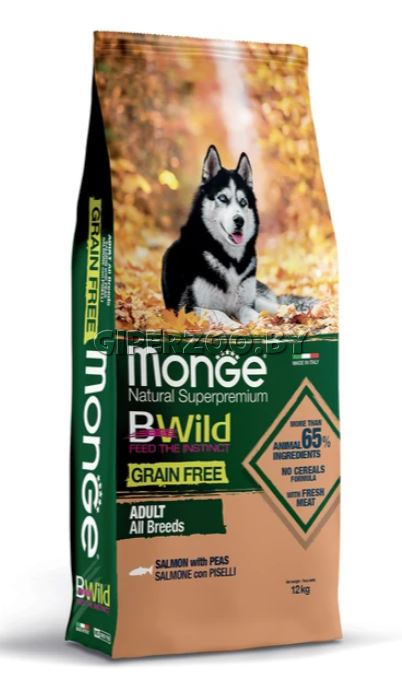 Monge (Монж) Dog BWild GRAIN FREE (холистик) беззерновой сухой корм из лосося и гороха для взрослых собак всех пород 12 кг.