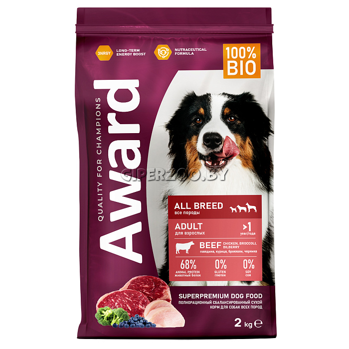 AWARD Adult All breeds Dog (говядина. курица, брокколи, черника), 2 кг