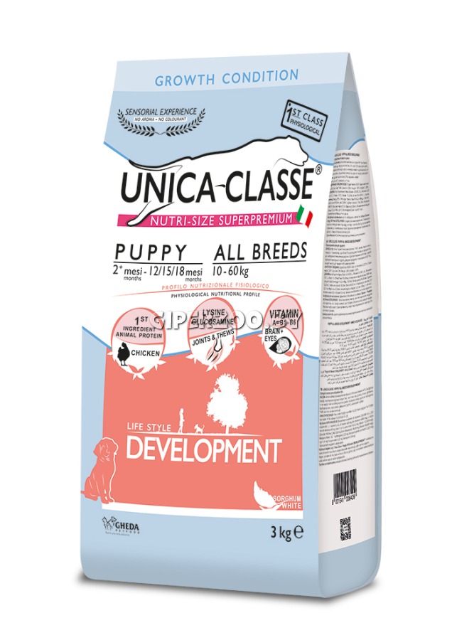 Сухой корм Unica Classe Puppy All Breeds Development для щенков всех пород (курица), 12 кг - это полнорационный сухой корм для щенков с 2 до 18 месяцев.