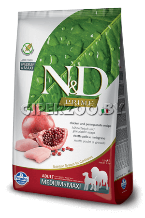 Farmina N&D Grain Free Dog Chicken & Pomegranate Adult Medium | Maxi (курица и гранат), 15 кг - полнорационный беззерновой корм для взрослых собак (курица, гранат).