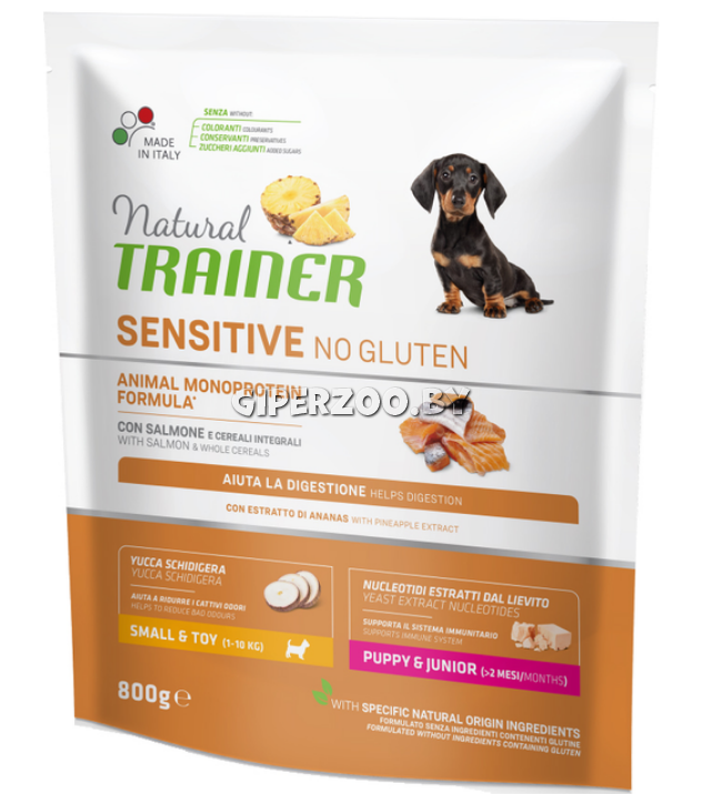 Trainer Natural Sensitive No Gluten Mini Puppy&Junior (лосось), 800 гр