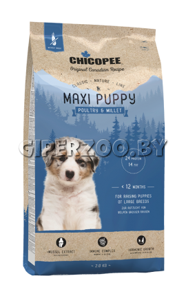 Chicopee CNL Maxi Puppy Poultry & Millet, сухой корм для щенков крупных пород, 2 кг – это сбалансированный рацион с птицей и просом супер-премиум класса.