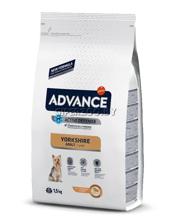 Advance Dog Yorkshire Terrier - это высококачественный сбалансированный полнорационный корм специально разработан для обеспечения пищевых потребностей собак породы Йоркширский терьер в возрасте от 8 месяцев.