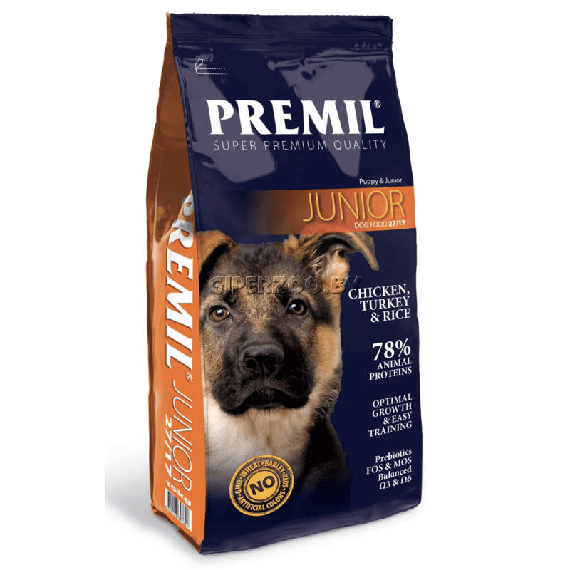 Premil SuperPremium Junior (Премил СуперПремиум Джуниор) полнорационный сухой корм для щенков и юниоров с индейкой, тунцом и рисом