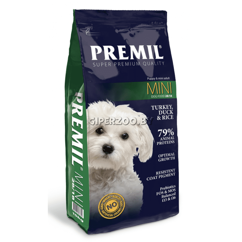Premil SuperPremium Mini (Премил СуперПремиум Мини) Корм для щенков и молодых собак малых и средних пород с уткой, индейкой, тунцом и рисом