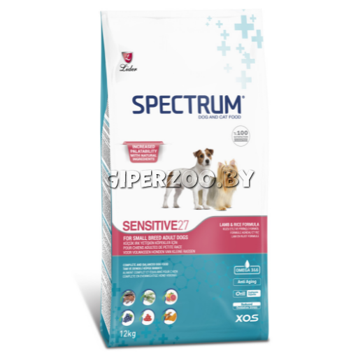 Корм для собак сухой SPECTRUM Sensitive 27 Mini ягненок с рисом полнорационный корм для взрослых собак мелких пород с чувствительным пищеварением. Обогащён натуральным комплексом антиоксидантов Synox 3D - обилие экстрактов трав (розмарина, куркумы, цитрусовых, манго и т.д.). Клинически доказано, что натуральные антиоксиданты предотвращают окислительное повреждение клеток у домашних животных. Антарктический криль (Euphausia superba) обеспечивает высокий уровень биодоступных морских фосфолипидов для работы мозга, укрепления суставов и здоровья кожи собаки.