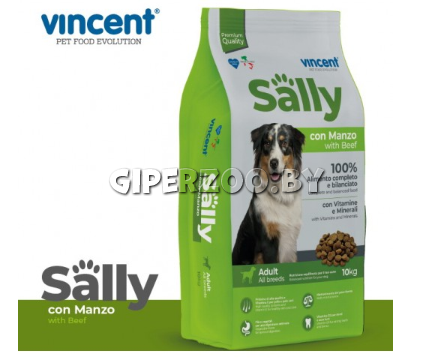 VINCENT SALLY Dog Adult Manzo 10 кг (Говядина) Полнорационный и сбалансированный корм для взрослых собак всех пород со всеми необходимыми витаминами и минералами. Витамин Е для шерсти и кожи, клетчатка для оптимального пищеварения, витамин D3 для здоровья костей и зубов, поддержка идеальной массы тела.