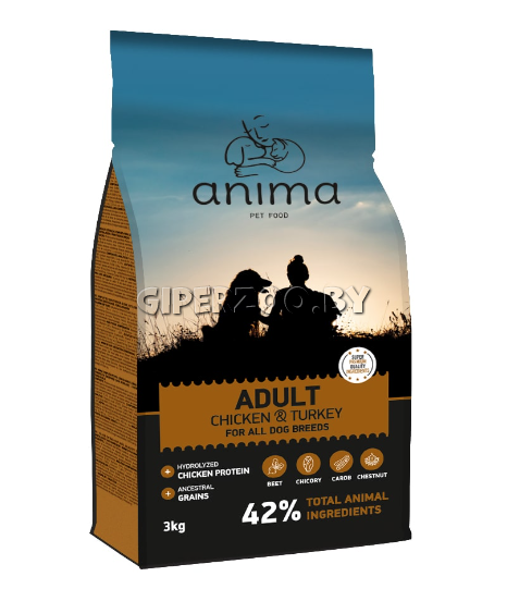 Anima Adult All Breed (Курица, индейка) — полнорационный корм для взрослых собак всех пород.