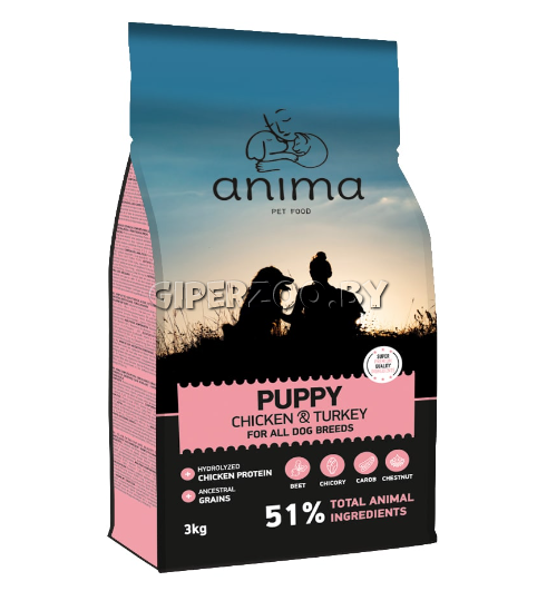 Anima Puppy All Breed (Курица, индейка, рис) — полнорационный сухой корм для щенков всех пород.