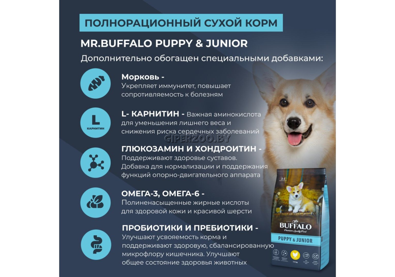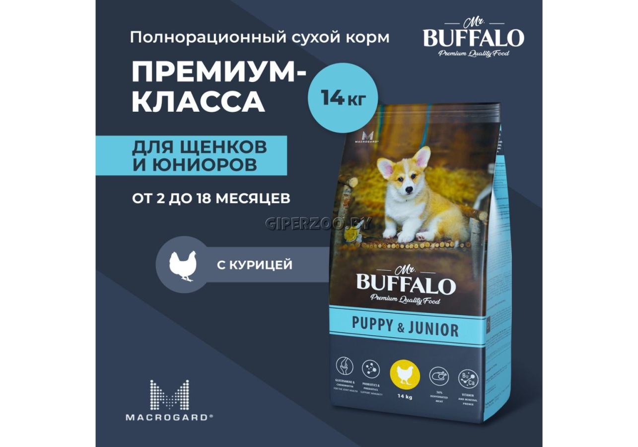 Mr.Buffalo Puppy & Junior (Курица) 14 кг - корм для щенков и юниоров средних и крупных пород.