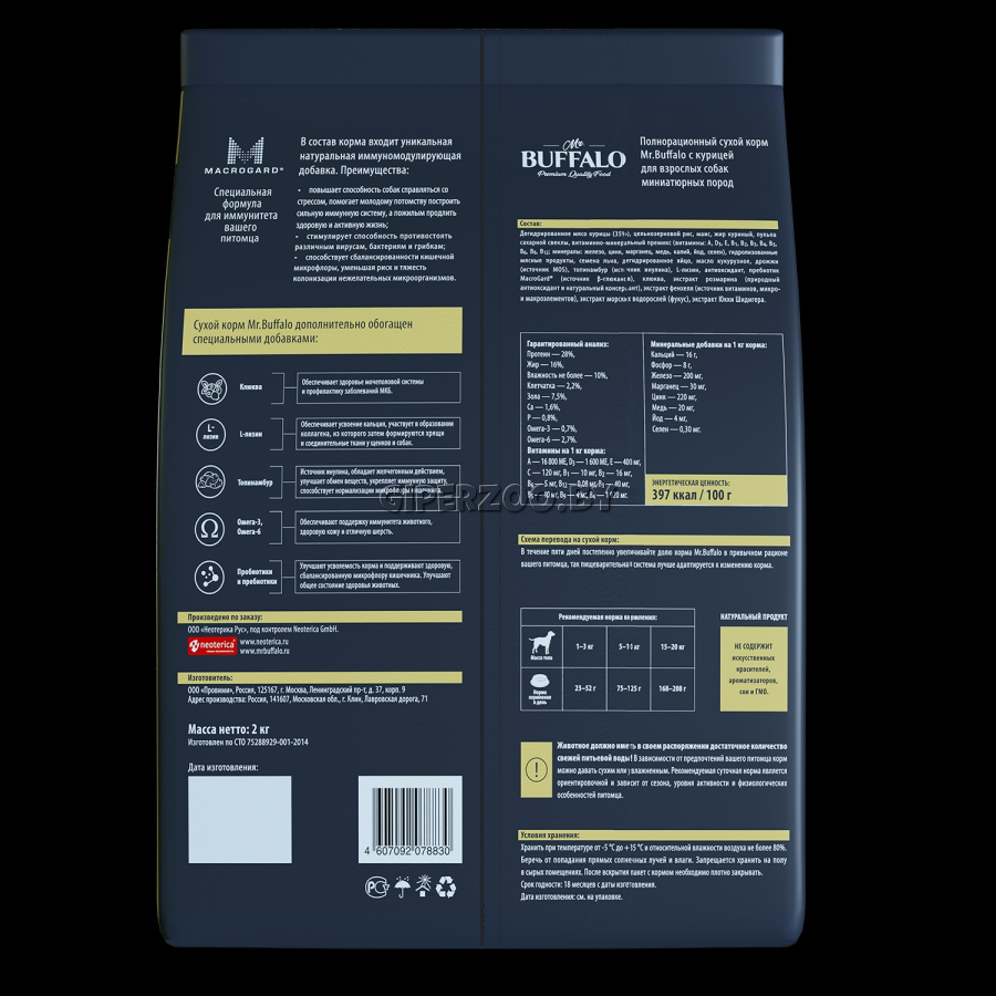 Одним из ключевых компонентов корма Mr.Buffalo является уникальное запатентованное вещество MacroGard® (МакроГард), которое является натуральным иммуностимулятором.