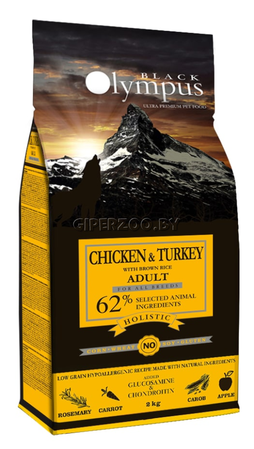Black Olympus Низкозерновой корм для взрослых собак всех пород курица и индейка с бурым рисом, 12 кг — низкозерновой корм класса холистик с курицей, индейкой и бурым рисом для взрослых собак всех пород.