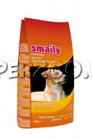 Smaily Professional High Quality – является полным сбалансированным кормом для собак с отличными вкусовыми качествами и усвояемостью, разработанный для удовлетворения потребностей собак любых пород. Состав: мясная мука (из них курица мин. 10%), кукуруза, цельная пшеница, стабилизированный животный жир, рыбная мука, пульпа свеклы, мякоть цикория (ФОС), витамины и минералы. С антиоксидантами, одобренными EEC.