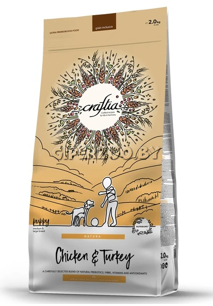 Craftia Natura Puppy Medium&Large (Курица, индейка) — корм для щенков средних и крупных пород ультрапремиум класса, созданный с любовью к природе.