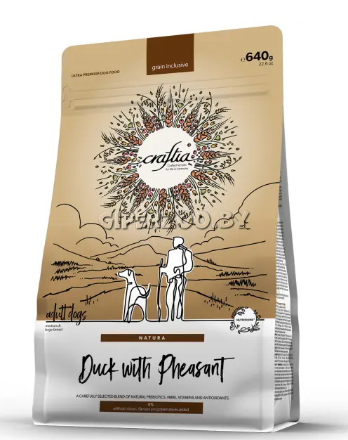 Craftia Natura Adult Medium&Large (Утка, фазан) — корм для взрослых собак средних и крупных пород ультрапремиум класса, созданный с любовью к природе.