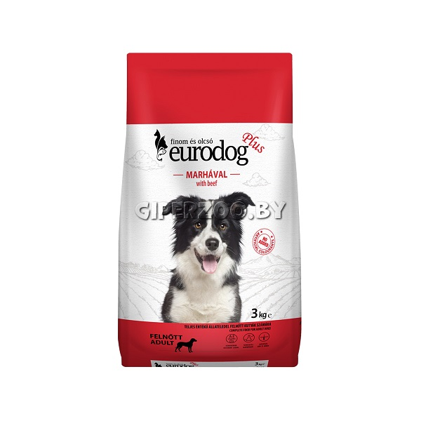 Eurodog сухой корм для собак с говядиной 20% протеина, 10 кг - подходит для ежедневного рациона.