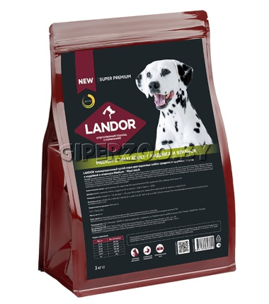 Landor Medium&Maxi Adult (индейка и ягненок), 15 кг - полнорационный сухой корм для взрослых собак cредних и крупных пород, c индейкой и ягненком