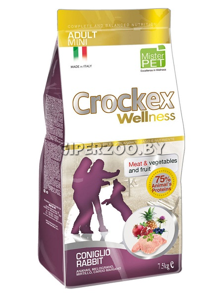 Crockex Wellness Adult Dog Mini Rabbit & Rice 7,5 кг - полноценный корм для взрослых собак мелких пород с кроликом и рисом.
