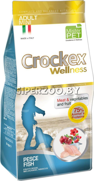 CROCKEX Wellness Adult Fish & Rice для собак (рыба, рис), 7,5 кг - низкозерновой сбалансированный корм. Изготовлен с использованием большого количества свежего мяса и из ингредиентов без глютена. Содержит лекарственные травы, фрукты и овощи, богатые витаминами и минералами.