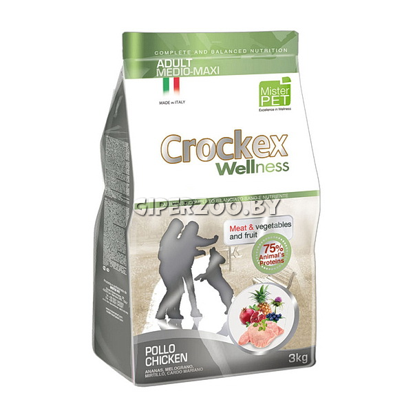 Crockex Wellness Adult Dog Medium/Maxi Chicken&Rice 12 кг - этот полноценный рацион, дополненный функциональными ингредиентами, поддержит здоровье собаки.