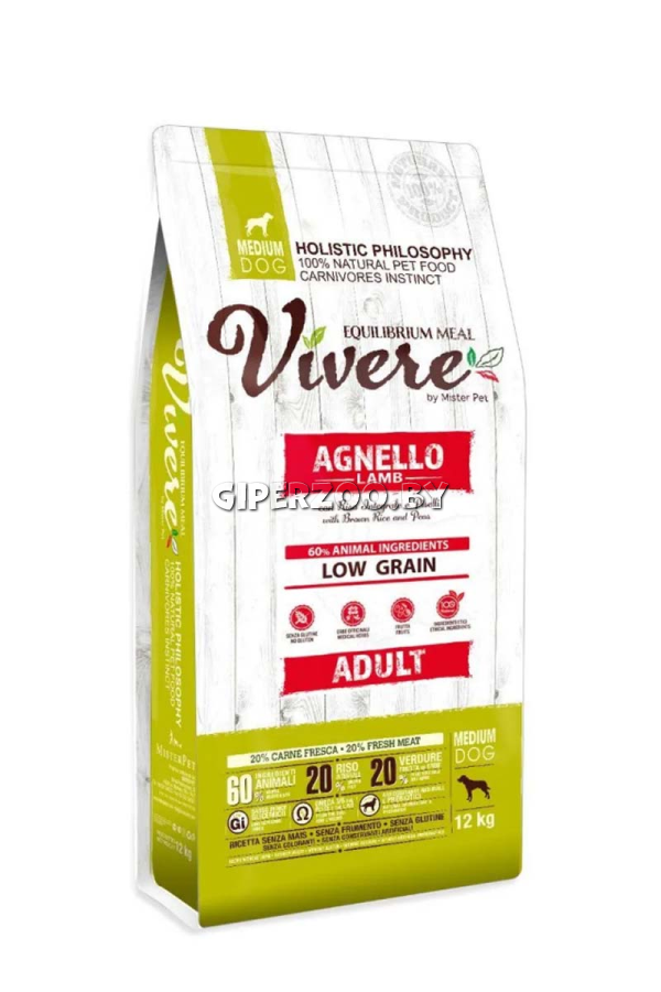 Vivere Medium Adult Lamb (ягненок) - низкозерновой корм супер премиум класса для взрослых собак средних пород.