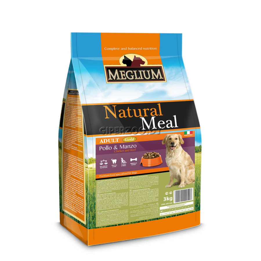 Сухой корм Meglium Adult Gold для собак (говядина и курица), 3 кг - это полноценный корм для взрослых собак всех пород с говядиной.