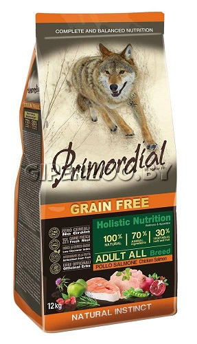 Сухой корм Primordial Grain Free Adult All – специальный рацион, который учитывает самый древний и естественный инстинкт питания собак – большое количество мяса и незначительное количество злаков. Он изготовлен с использованием только натурального свежего мяса (70% мясных компонентов) и растительных продуктов (ананас, яблоки, гранат, черника, клюква, одуванчик, чертополох, юкка, водоросли), содержит пребиотики и антиоксиданты.