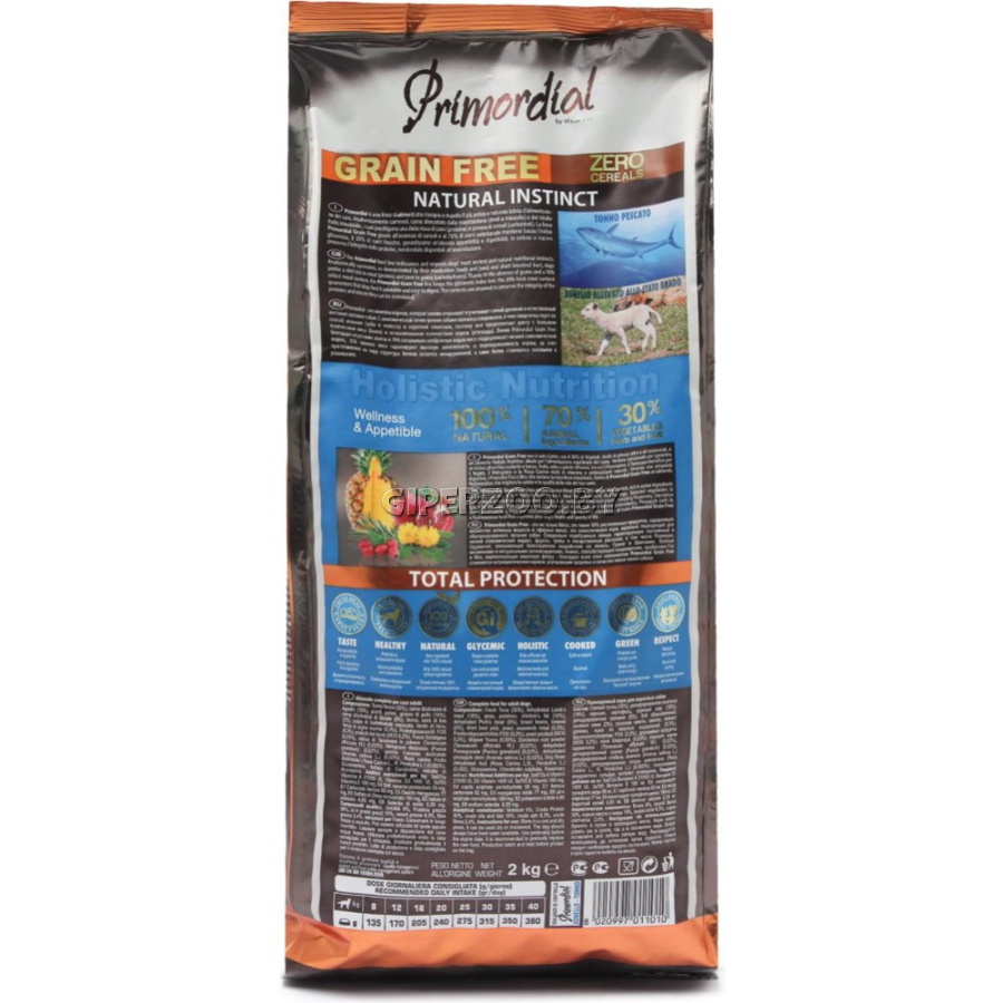 Primordial Dog Adult Tuna&Lamb, 12 кг - это полноценный беззерновой корм класса холистик для взрослых собак всех пород с тунцом и ягненком.